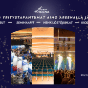 Aino Areenalla Järvenpäässä järjestetään monipuolisesti erilaisia yritystapahtumia kuten messuja, seminaareja, kick-offeja ja henkilöstöjuhlia myös ensi vuonna. Lue tästä
